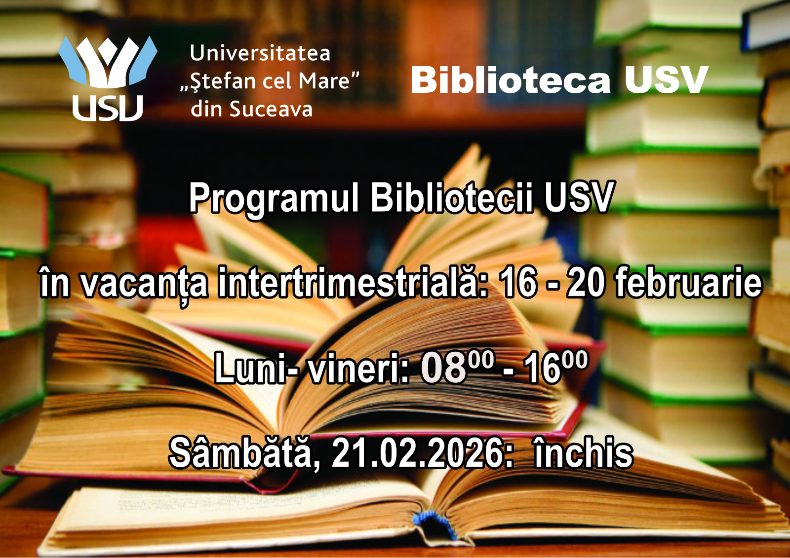 Programul Bibliotecii USV în perioada vacanței intertrimestriale